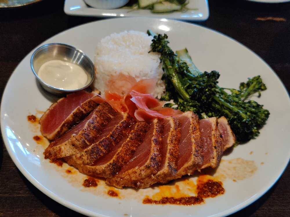 Delicious Greek meal with a salad, chicken skewer, and pita bread.